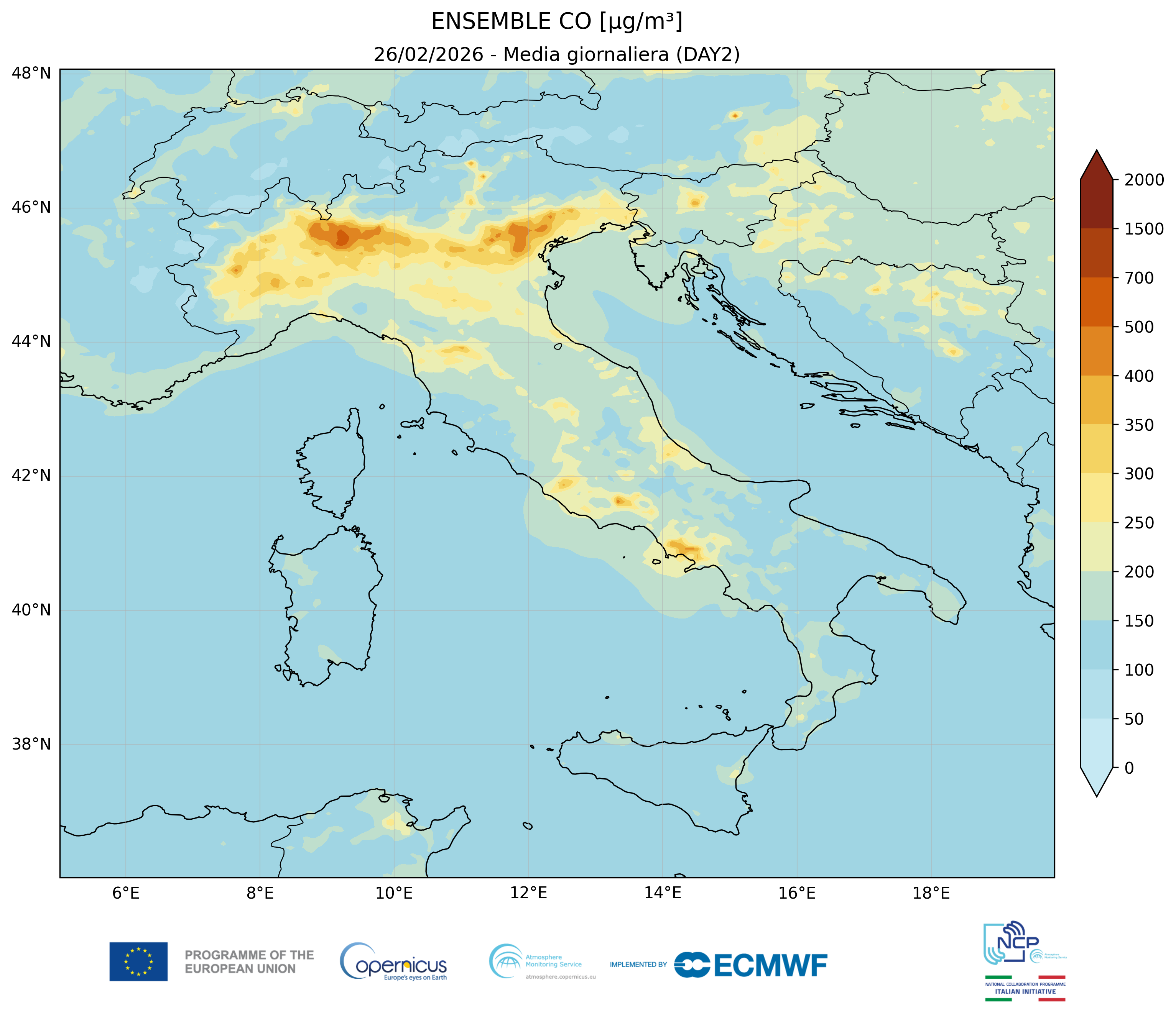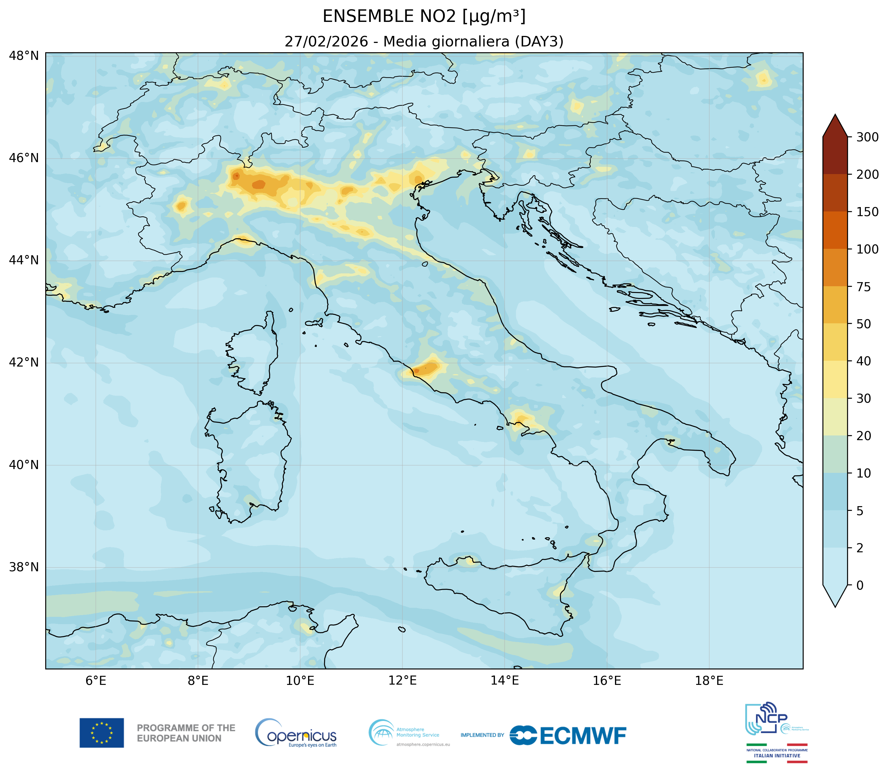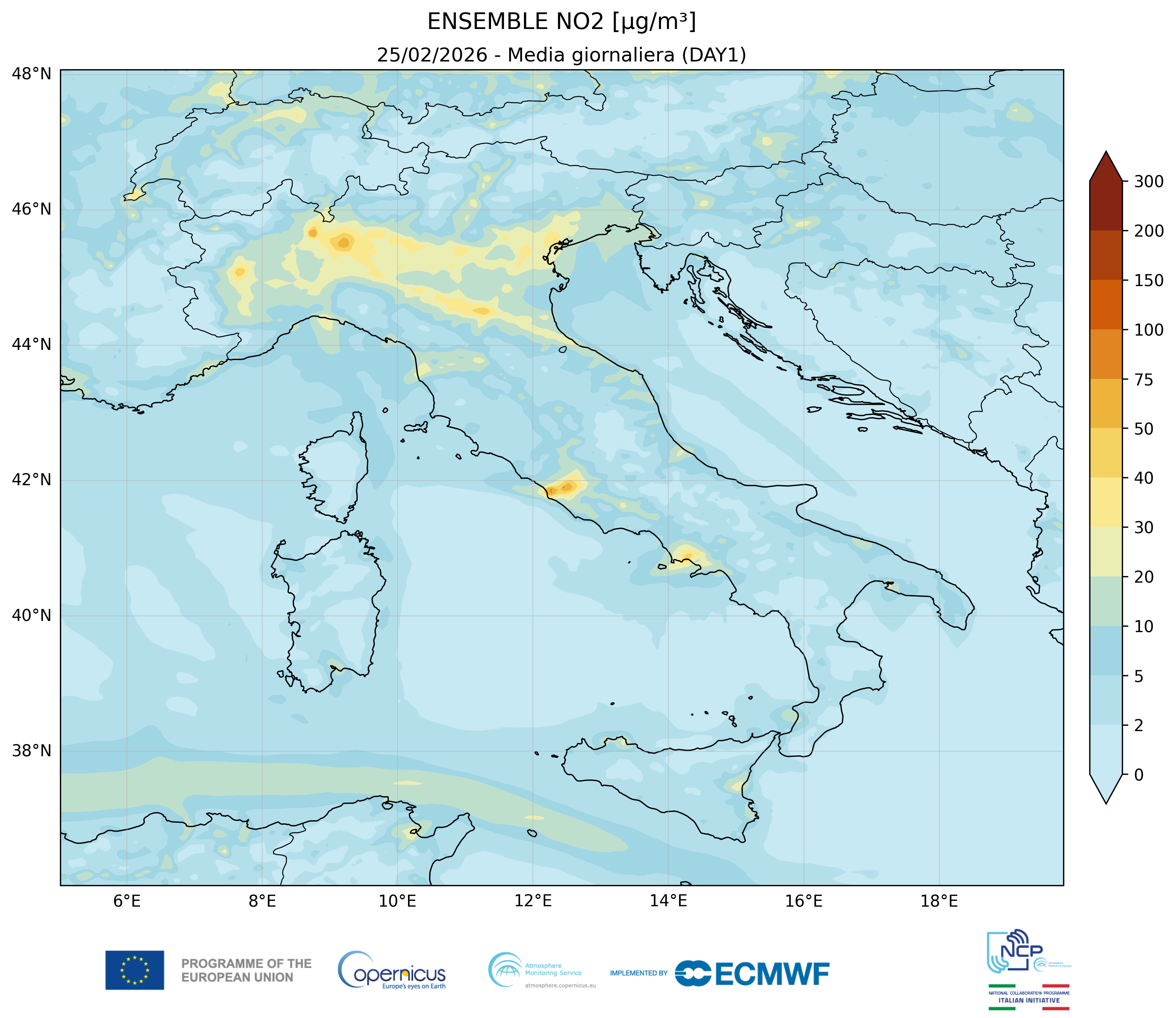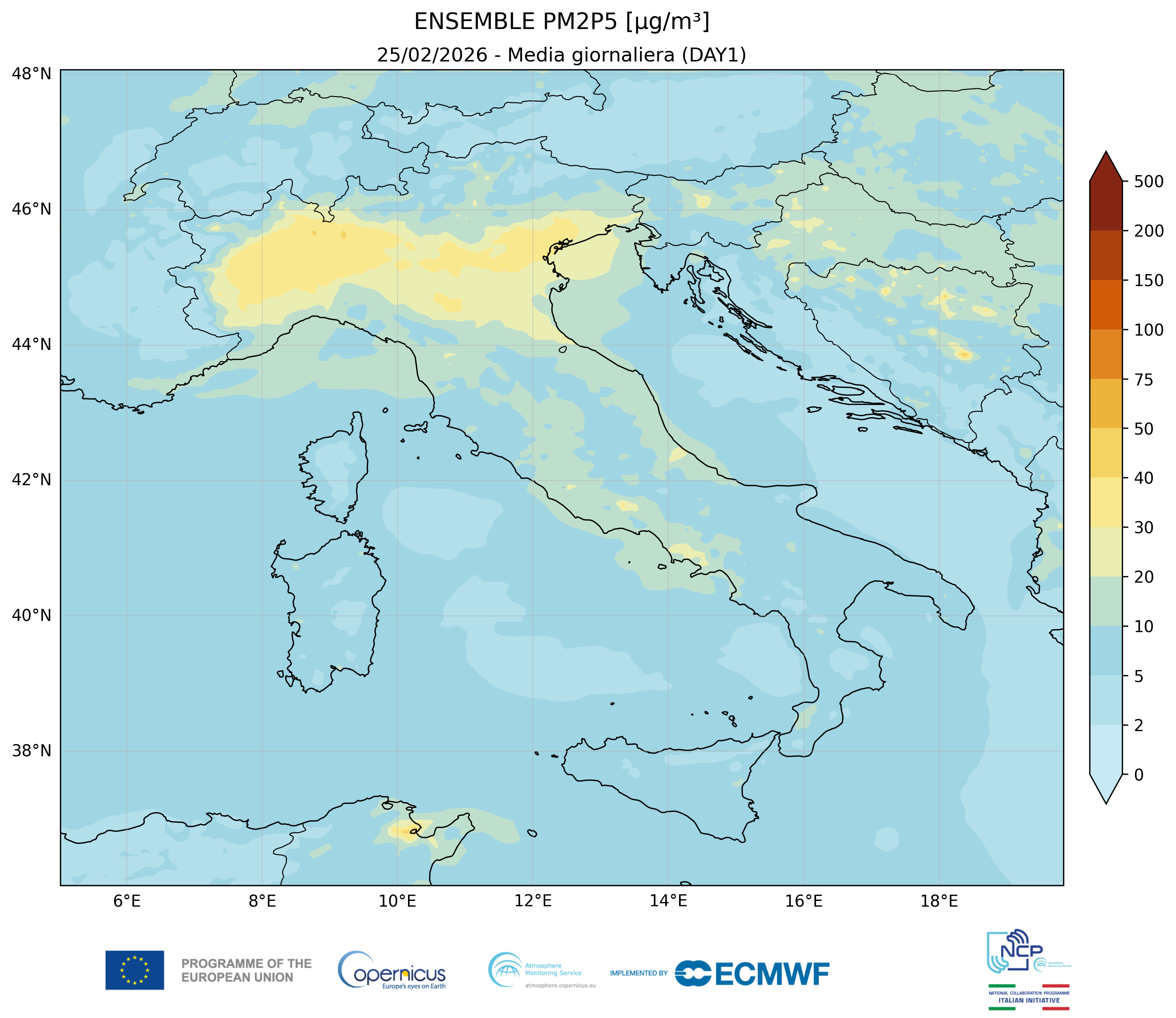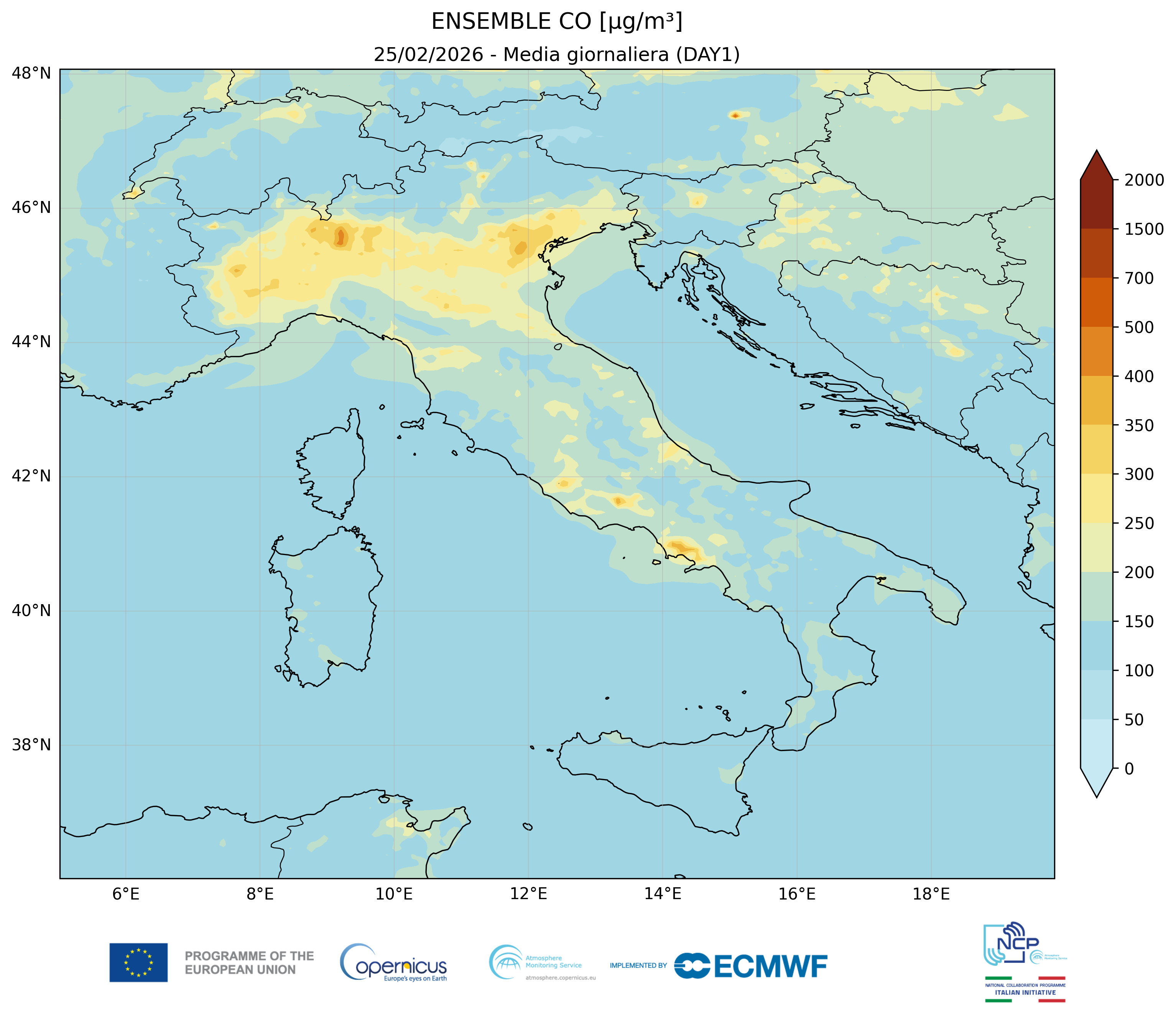 I modelli di qualità dell’aria sono strumenti matematici che simulano come gli inquinanti si muovono e si trasformano nell’atmosfera. Il CAMS NCP elabora quotidianamente previsioni a livello nazionale per i principali inquinanti. L’approccio utilizzato è chiamato ensemble e combina i modelli nazionali di previsione attualmente disponibili.