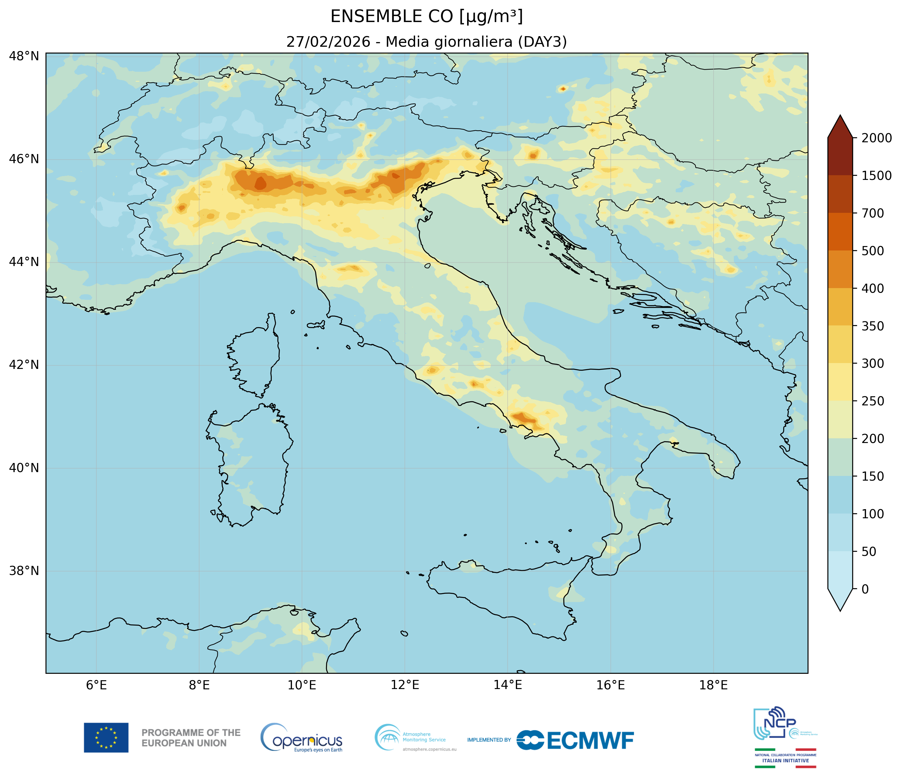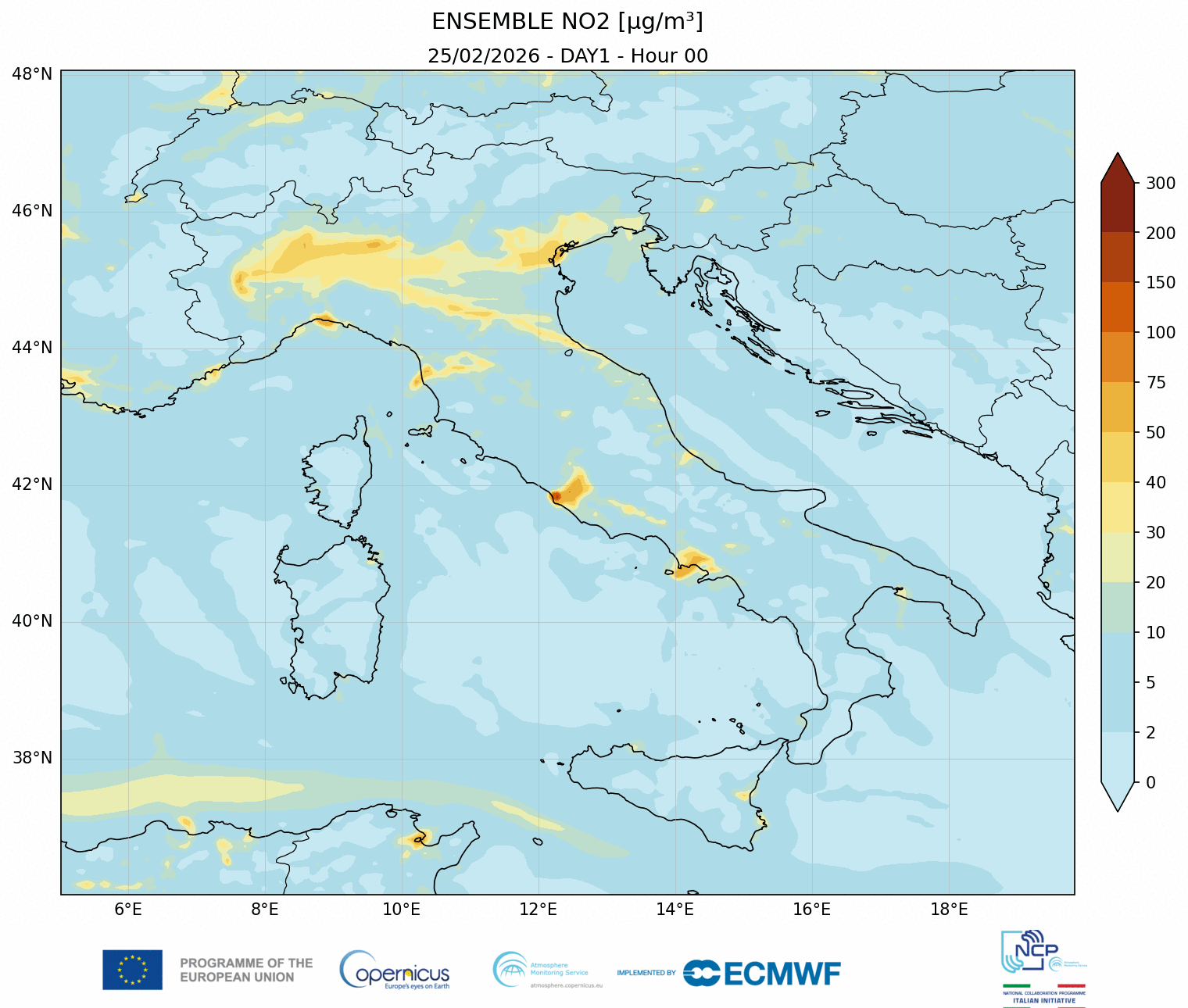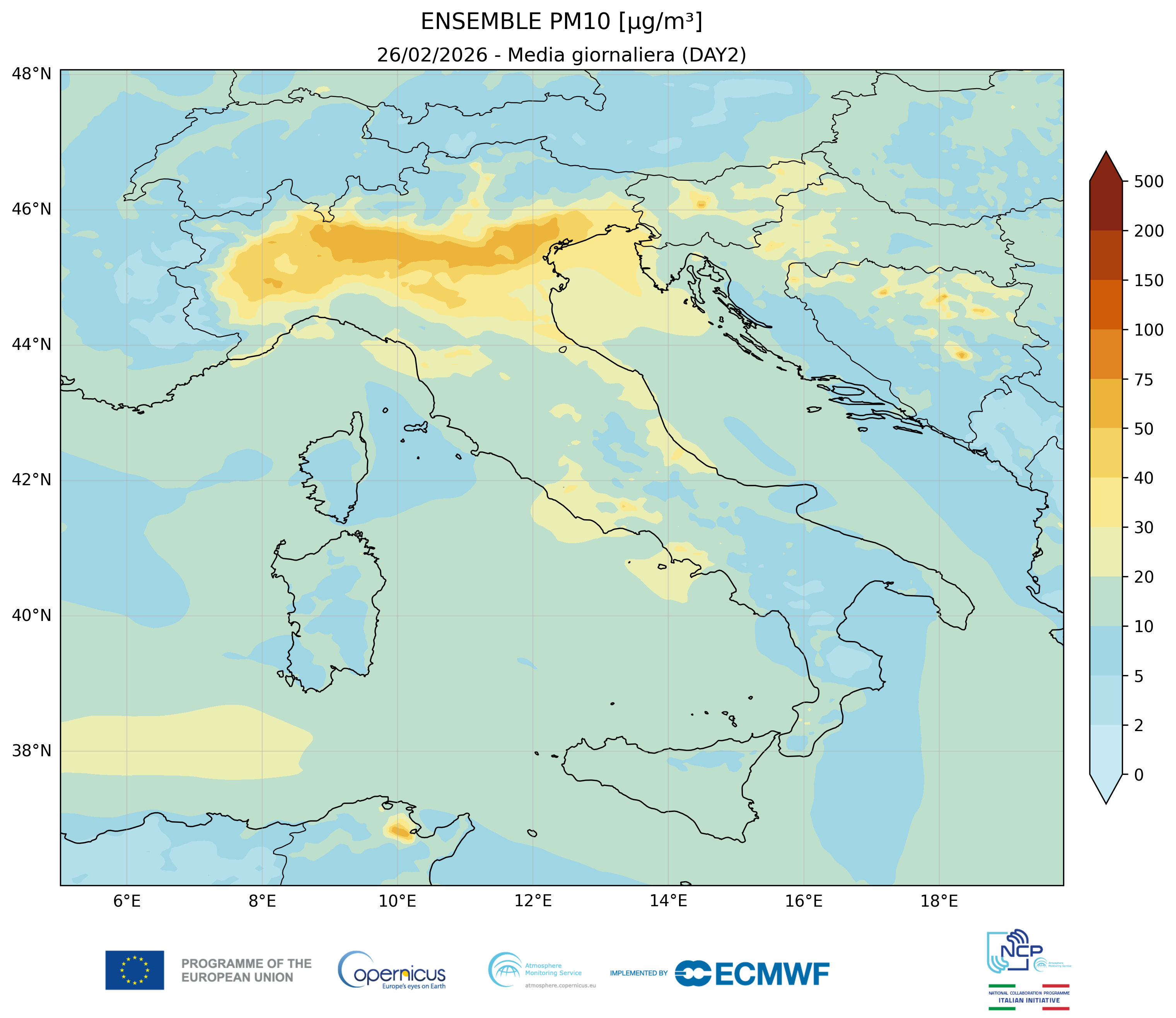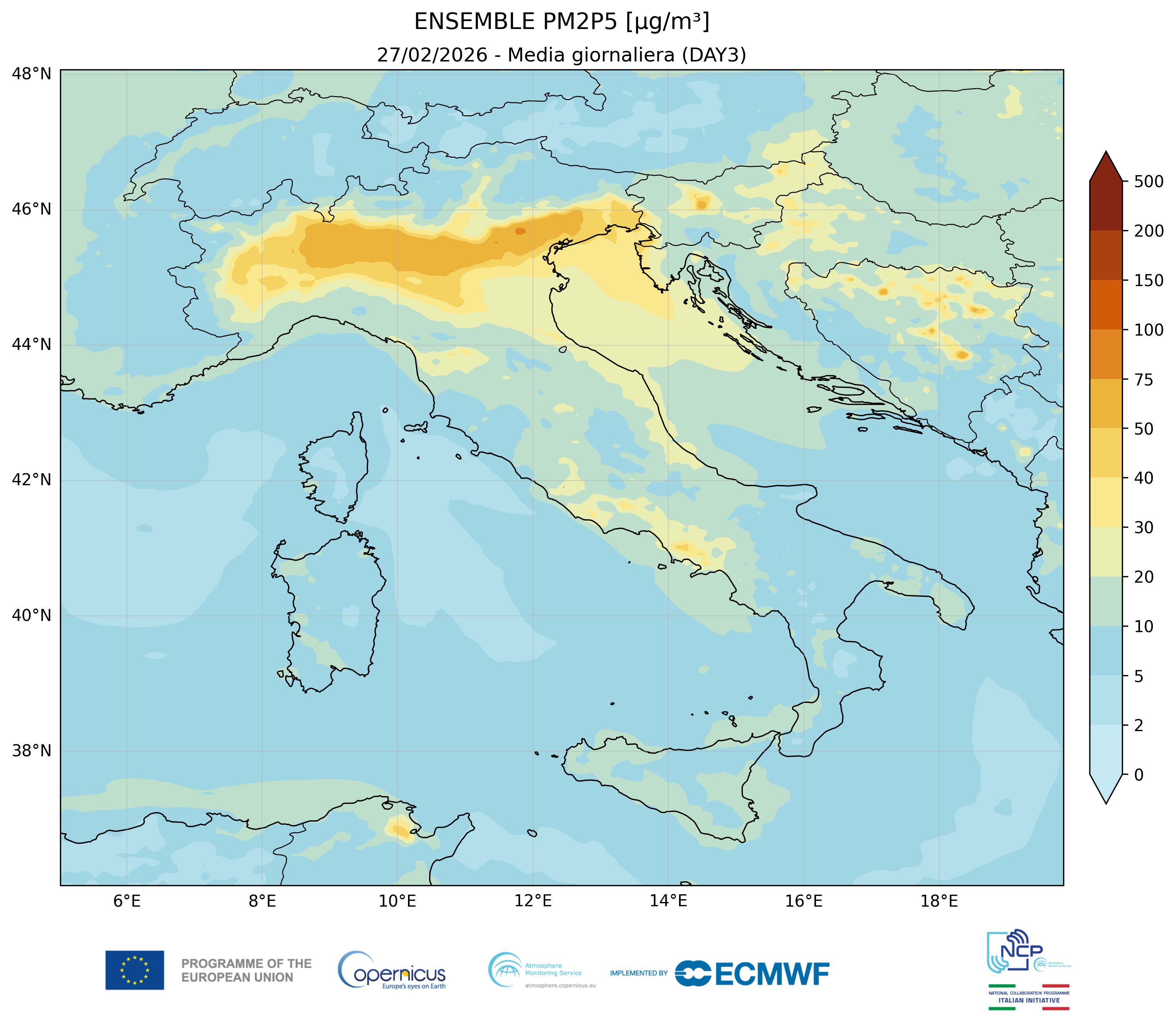 I modelli di qualità dell’aria sono strumenti matematici che simulano come gli inquinanti si muovono e si trasformano nell’atmosfera. Il CAMS NCP elabora quotidianamente previsioni a livello nazionale per i principali inquinanti. L’approccio utilizzato è chiamato ensemble e combina i modelli nazionali di previsione attualmente disponibili.