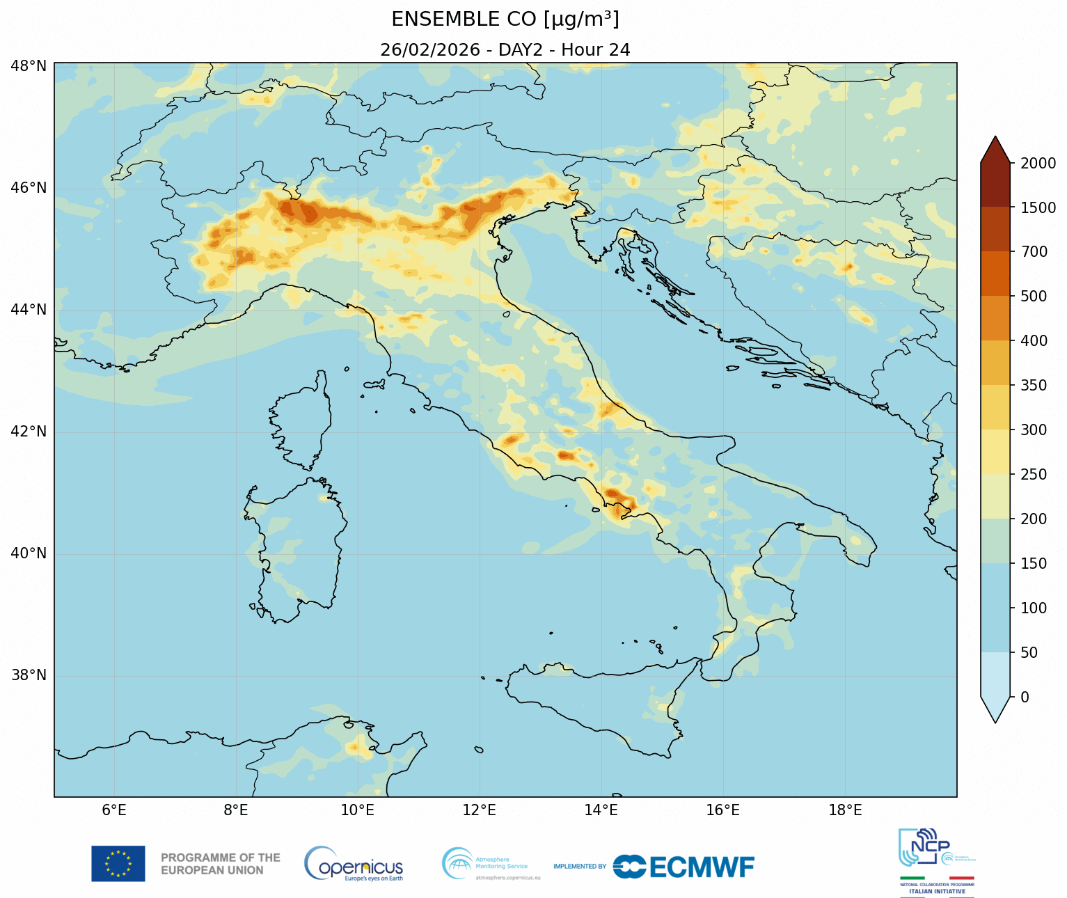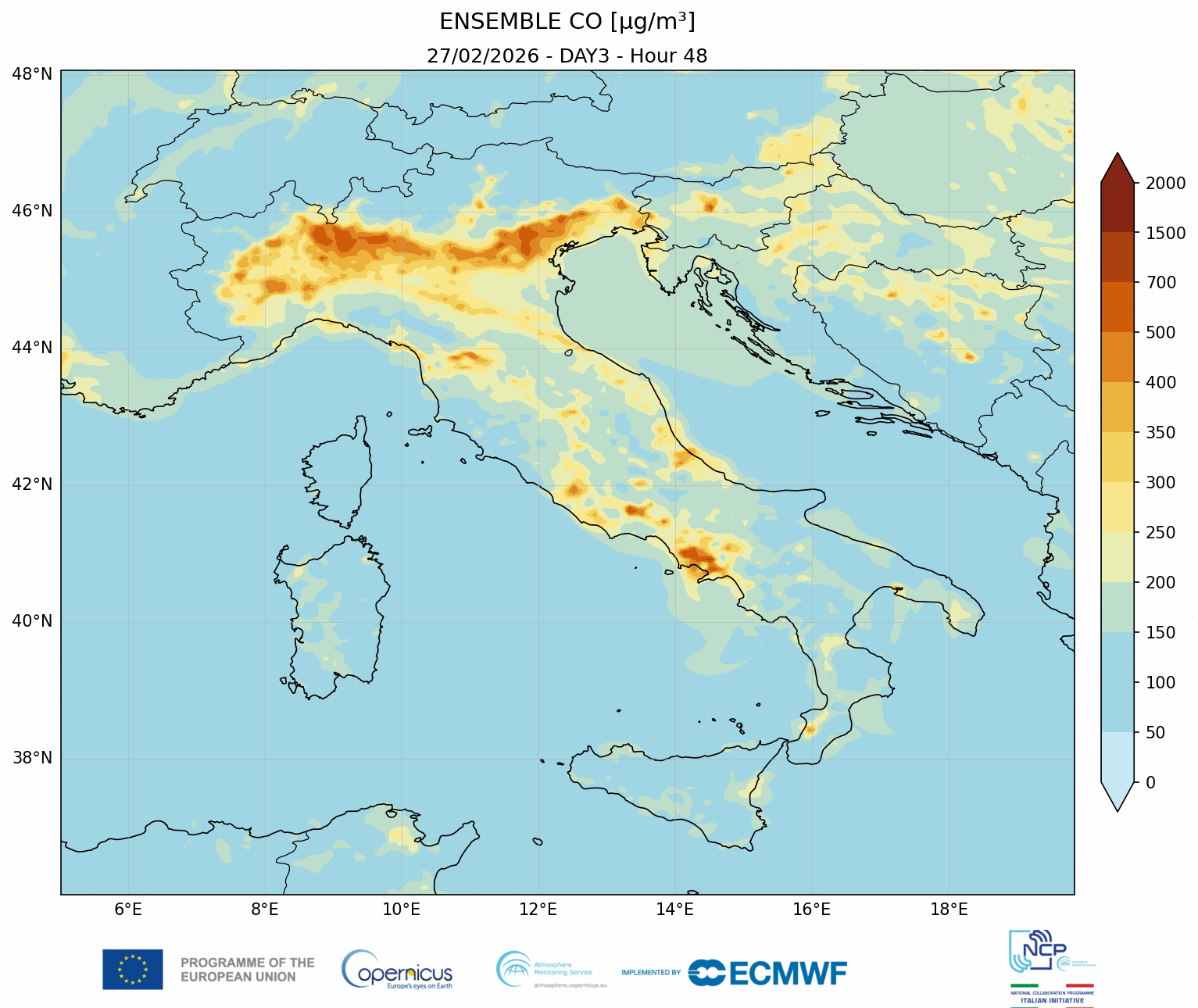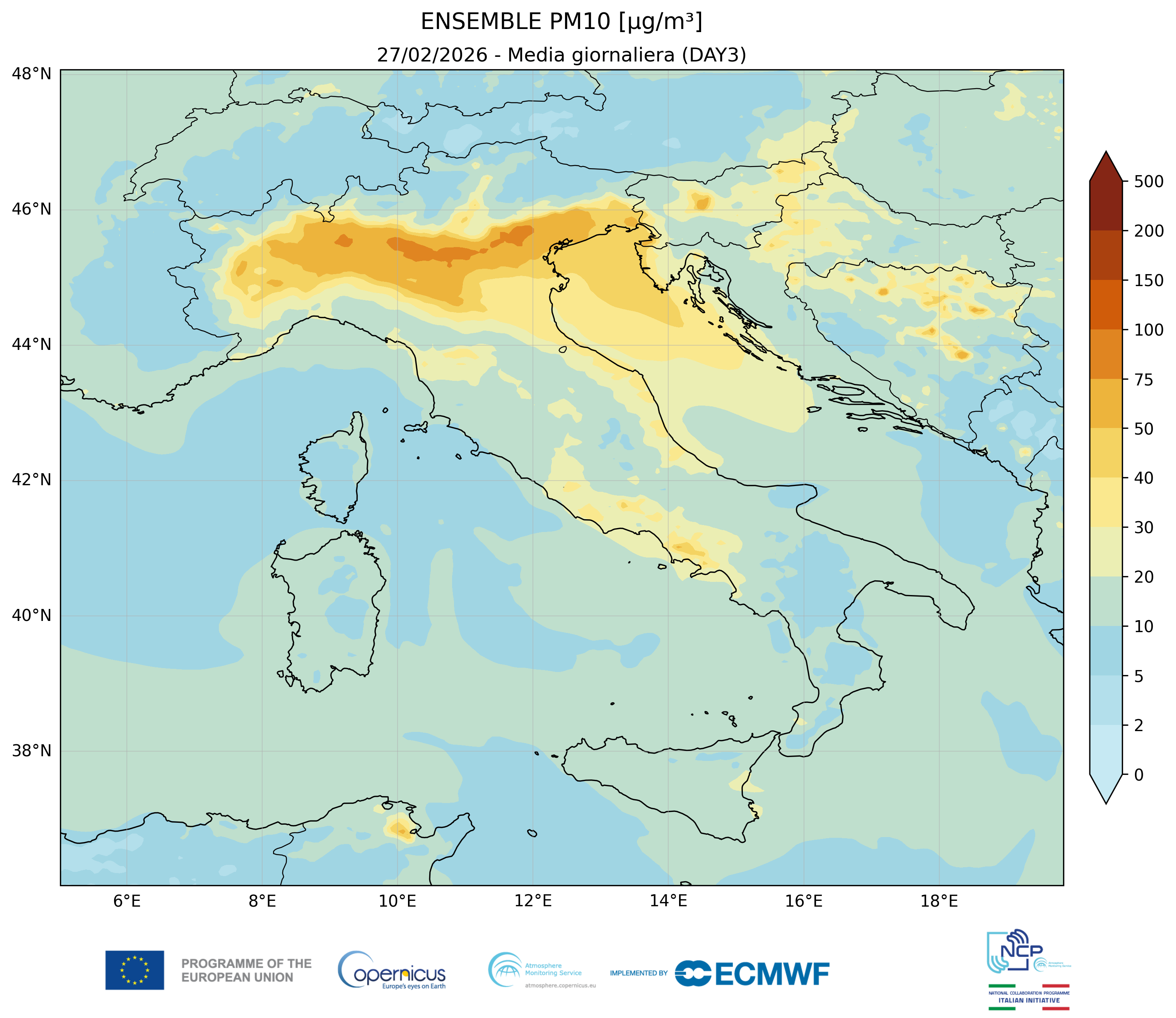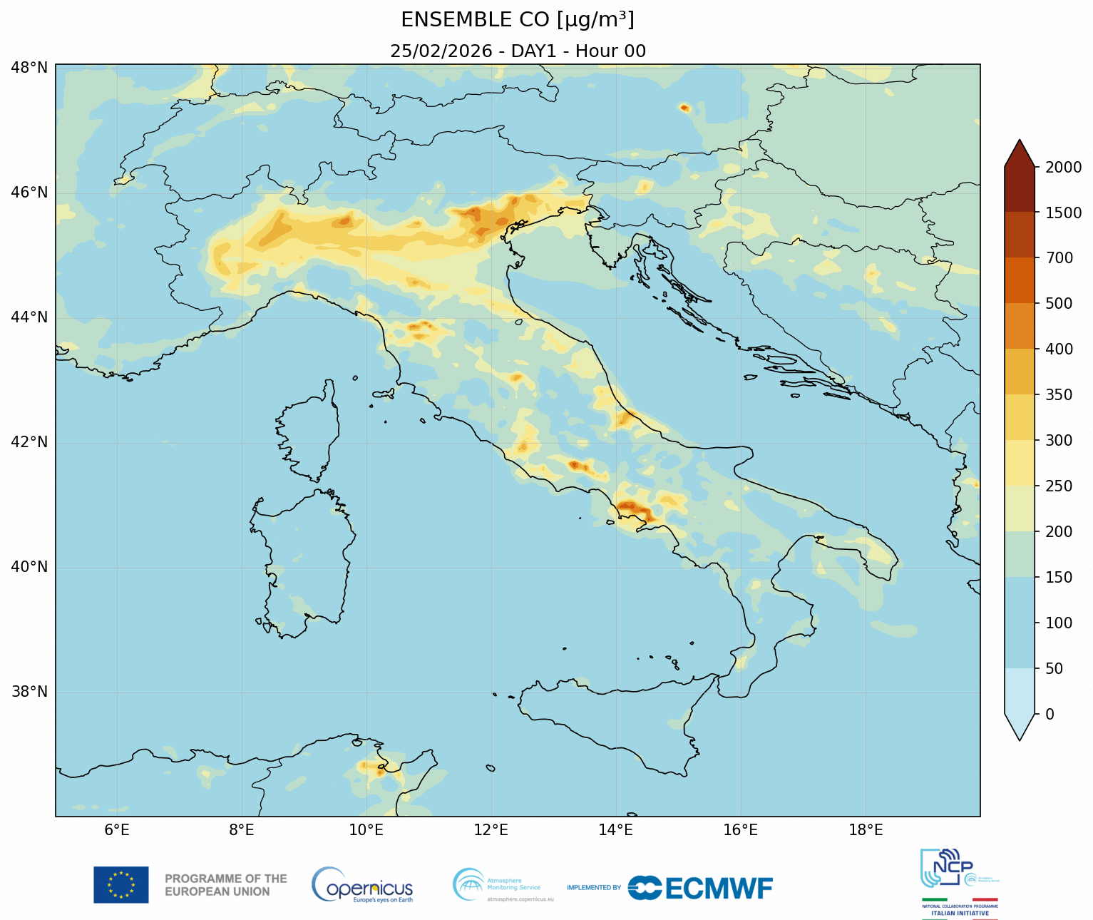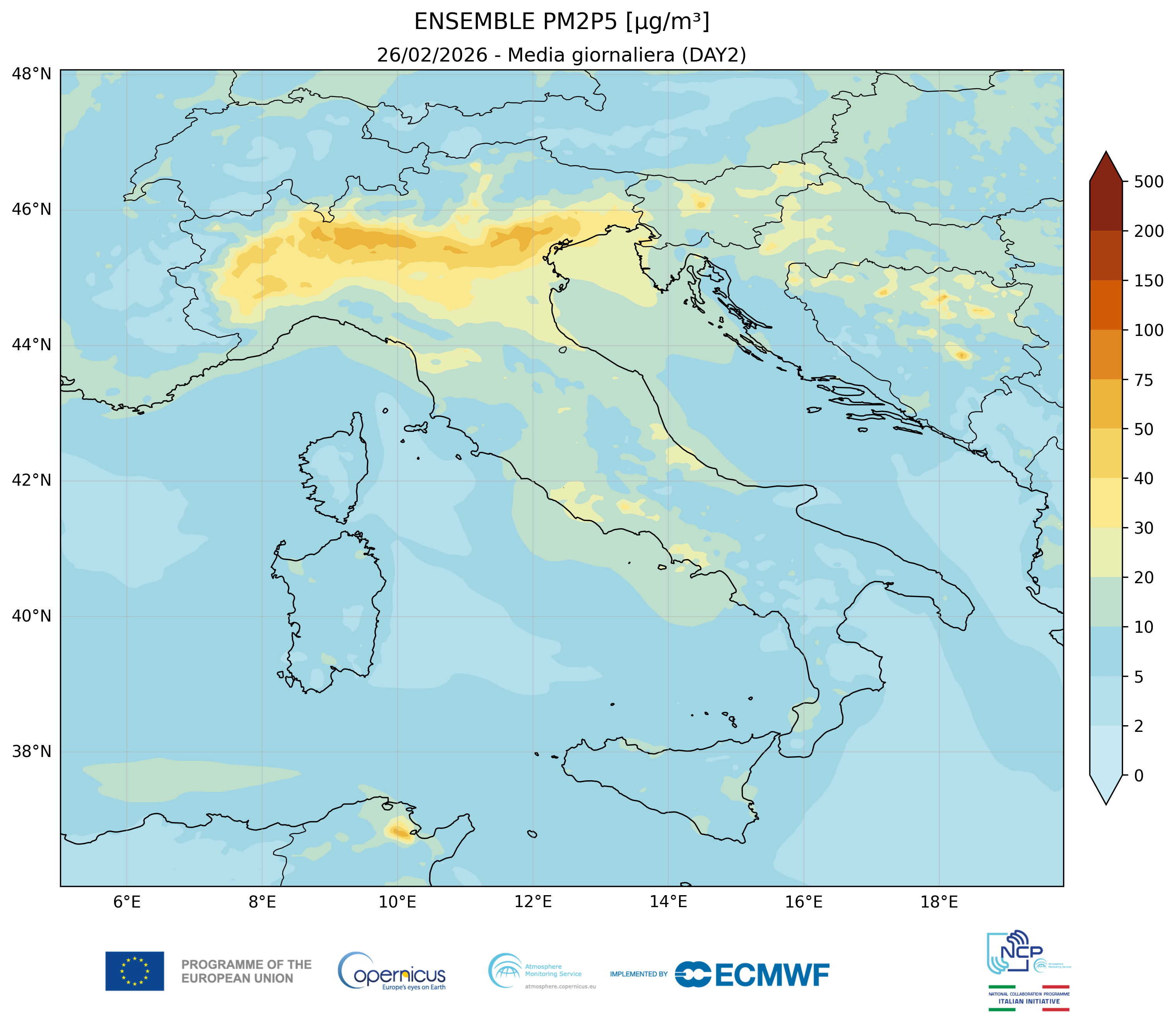 I modelli di qualità dell’aria sono strumenti matematici che simulano come gli inquinanti si muovono e si trasformano nell’atmosfera. Il CAMS NCP elabora quotidianamente previsioni a livello nazionale per i principali inquinanti. L’approccio utilizzato è chiamato ensemble e combina i modelli nazionali di previsione attualmente disponibili.