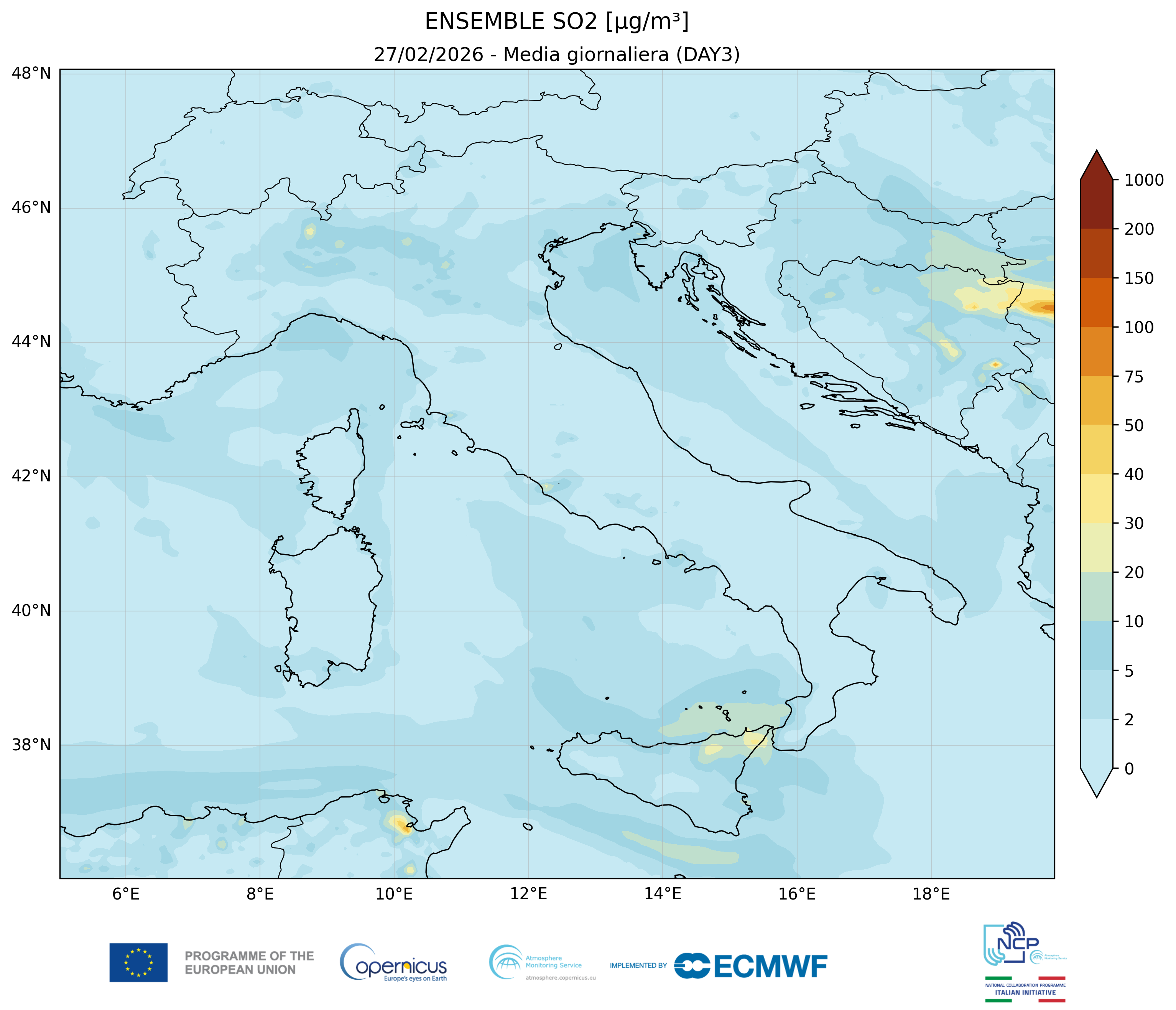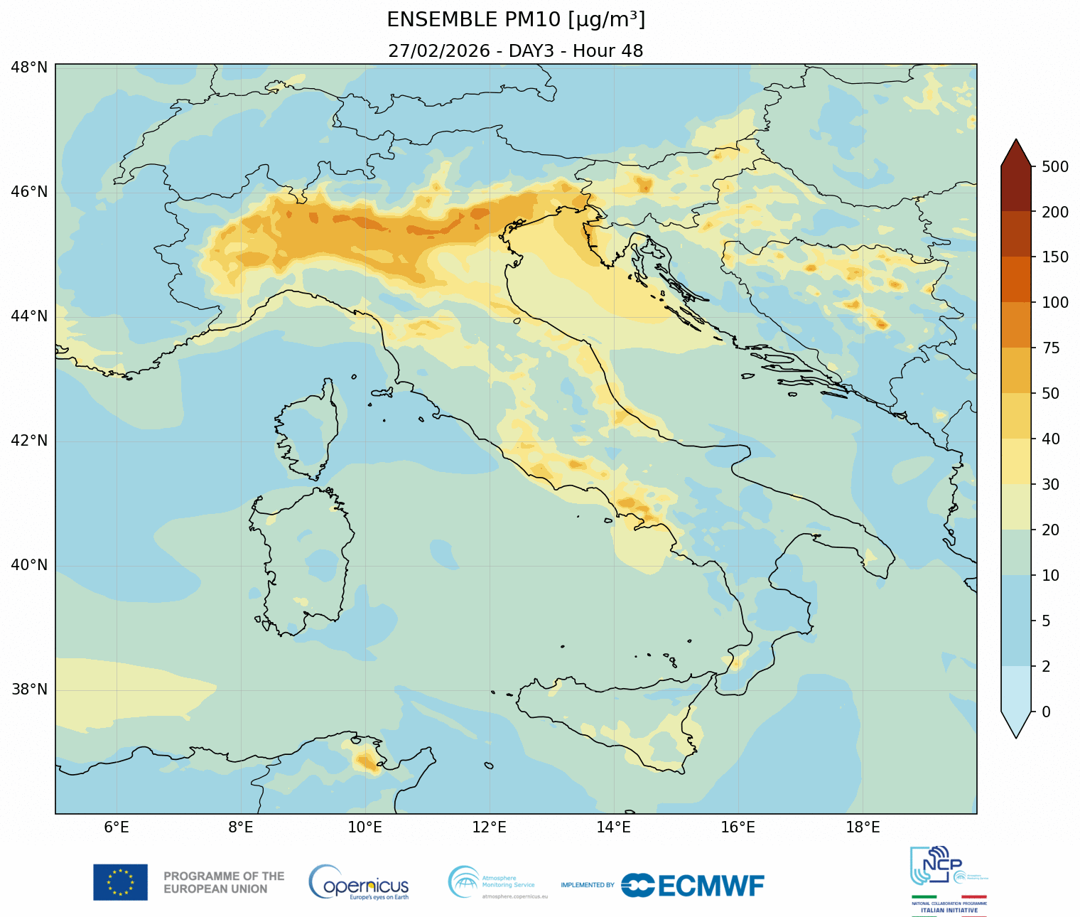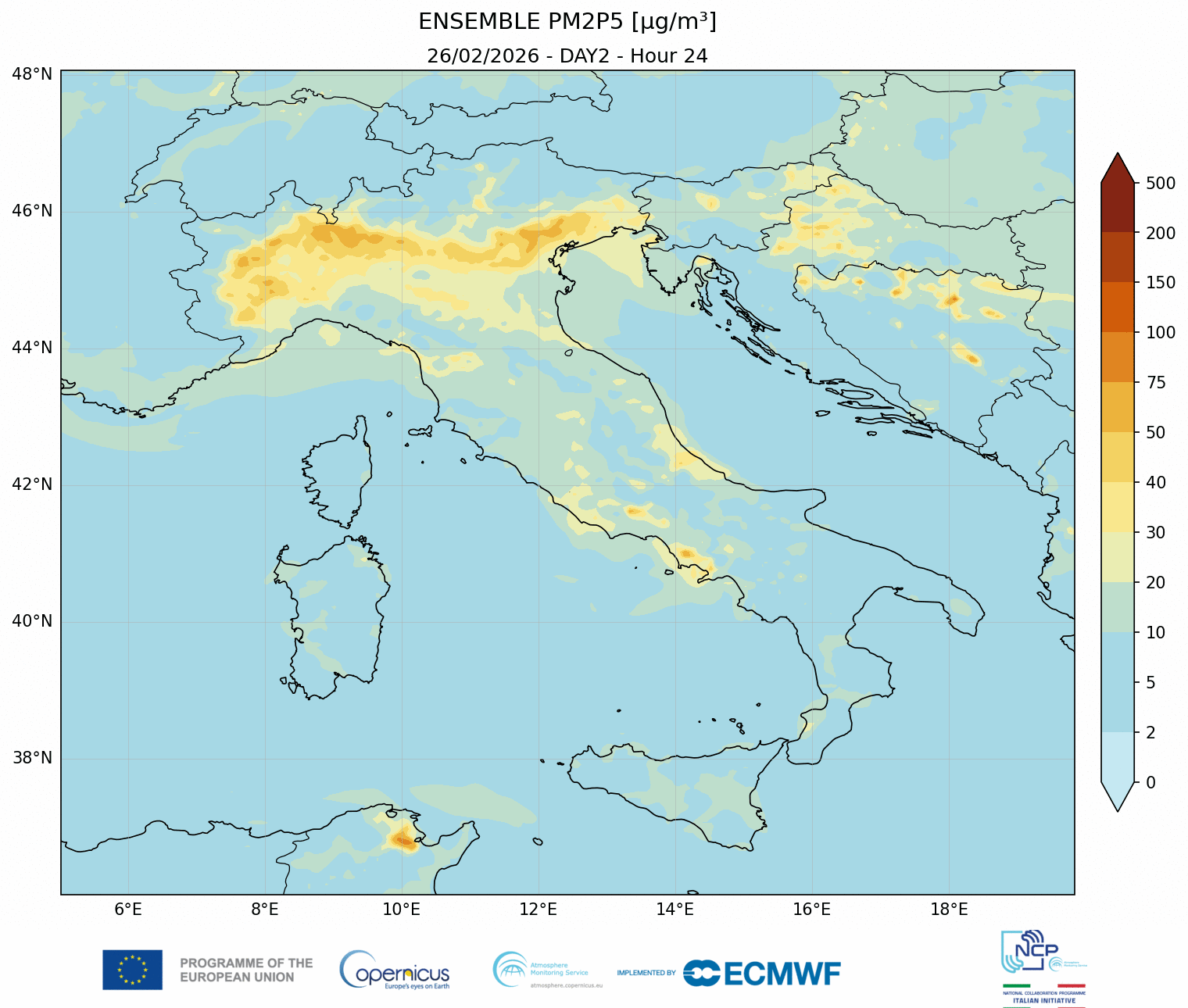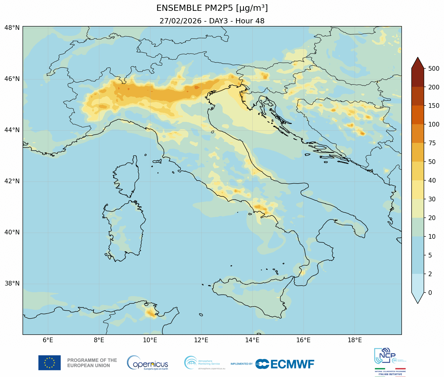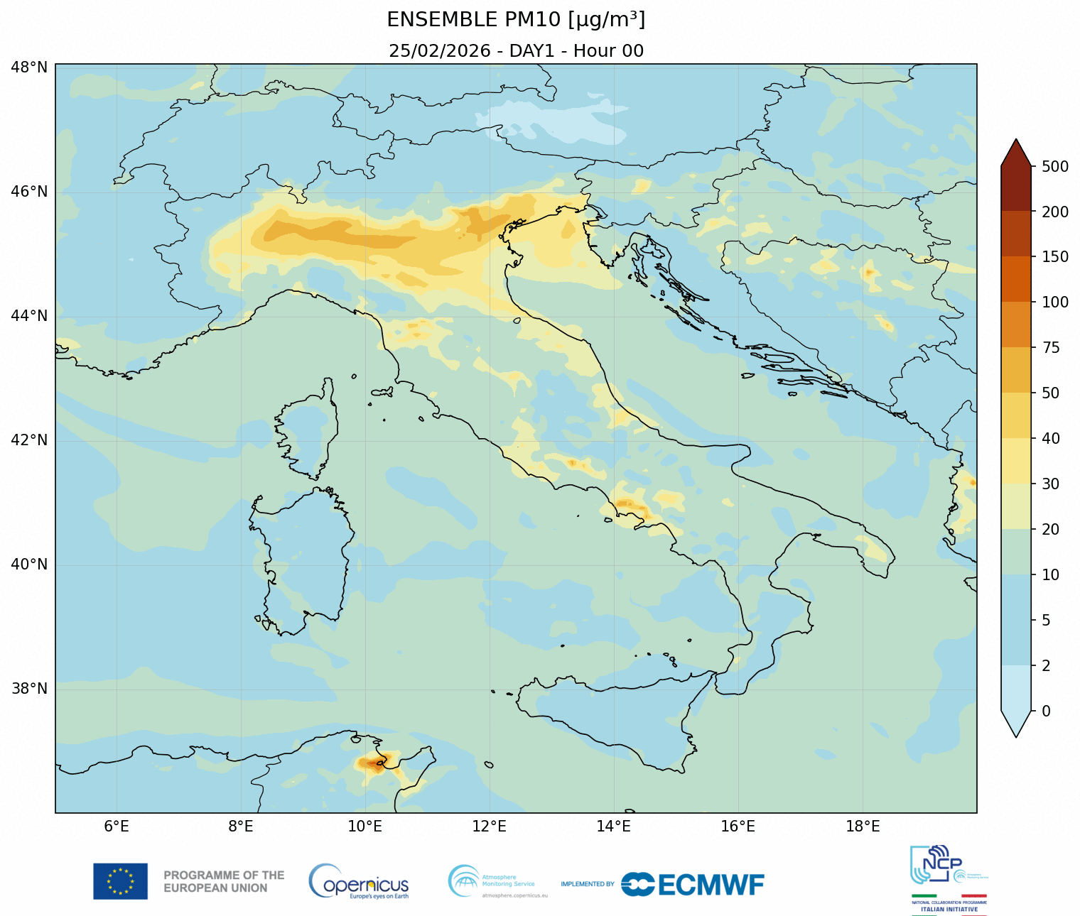 I modelli di qualità dell’aria sono strumenti matematici che simulano come gli inquinanti si muovono e si trasformano nell’atmosfera. Il CAMS NCP elabora quotidianamente previsioni a livello nazionale per i principali inquinanti. L’approccio utilizzato è chiamato ensemble e combina i modelli nazionali di previsione attualmente disponibili.
